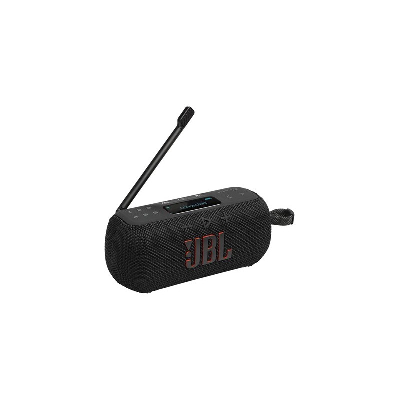 JBL Tuner 3 Radio portátil Dab/Dab+/FM Bluetooth con 6 preajustes, hasta 15 h de autonomía, Resistencia IP68, conexión Multi-Altavoz Auracast, Compatible con la aplicación JBL Portable, NegroMarca JBLColor NegroFunción especial Display, Multi Room Audio, Portátil, Waterproof, dustproofTecnología de conectividad BluetoothTecnología del sintonizador DAB+, FMFuente de alimentación Funciona con pilasBandas de radio compatibles DAB/DAB+, FMComponentes incluidos 1 tarjeta de garantía y ficha de seguridad, 1 unidad JBL Tuner 3, Guía de inicio rápido, Nota: Cable USB no incluido1 tarjeta de garantía y ficha de seguridad, 1 unidad JBL Tuner 3, Guía de inicio rápido, Nota: Cable USB no incluidoMaterial PlásticoFrecuencia 75 HzSintoniza la diversión: lleva tu música a cualquier parte con la radio portátil JBL Tuner 3 DAB/DAB+/FM, que cuenta con el potente sonido JBL Pro Sound, streaming por Bluetooth y un diseño duradero para todas tus aventurasSonido aumentado: sintoniza la radio FM y DAB con un sonido alto y nítido, y unos graves más potentes, gracias al potente transductor que ofrece un audio realistaResistente al agua y al polvo: la radio digital JBL Tuner 3 cuenta con una asa para facilitar su transporte y posee una clasificación IP68, llévala a fiestas en la piscina y a picnics en la playaPreajustes y Auracast: sintoniza tus estaciones de radio favoritas con uno de los 6 botones o disfruta de sonido estéreo emparejando dos altavoces o conectando múltiples altavoces JBL compatibles con AuracastSonido personalizado: esta radio a pilas ofrece hasta 12 horas de reproducción, más 3 horas extra con Playtime Boost, y te permite personalizar tu sonido utilizando la aplicación JBL Portable