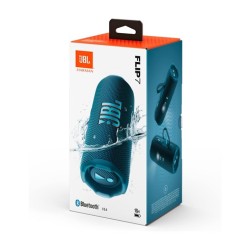 JBL Flip 7, Altavoz Bluetooth portátil inalámbrico Potente, 16h de batería, Resistente al Agua IP68, a Prueba de Polvo y caídas, Sonido Pro, AI Sound Boost, Compatible con Auracast, AzulMarca JBLPotencia de salida máxima del altavoz 180 WatiosRespuesta de frecuencia 20 KHzTecnología de conectividad BluetoothModo de salida de audio EstéreoVoltaje de entrada 3,63 VoltiosTipo de montaje Montaje en mesaMaterial PlásticoNombre del modelo JBL Flip 7Tipo de altavoz Altavoz portátilLleva la fiesta contigo: disfruta de hasta 14h de música con una sola carga gracias al altavoz portátil impermeable JBL Flip 7 y obtén 2h adicionales con Playtime BoostSonido potente: benefíciate de graves potentes y claros, incluso a volumen alto, y de agudos nítidos gracias al diseño de la cúpula del altavoz, la tecnología AI Sound Boost ofrece un rendimiento acústico con menos distorsiónLa banda sonora de tu vida: deja caer el JBL Flip 7 desde 1 m, llévalo a la ducha o cúbrelo de polvo sin que acabe la música, úsalo para fiestas épicas, no solo para impresionar a la gentePara los amantes de la aventura: haz que cualquier experiencia sea memorable, desde fiestas en la playa hasta reuniones en casa con este altavoz para teléfono portátil, conéctalo a varios altavoces Auracast y aumenta el sonidoTransportalo como te apetezca: el sistema PushLock cuenta con accesorios intercambiables, engancha, ata o sujeta tu altavoz gracias a la correa para la muñeca y el mosquetón incluidos
