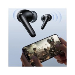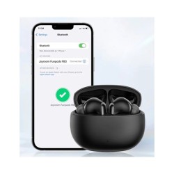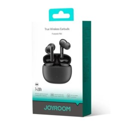 Auriculares inalámbricos Joyroom JR-FB3 con graves intensos y sonido HiFi - Negro2 ecualizadores: Refuerzo de graves + Modo clásicoBT5.3 + Reconexión en un solo paso: mayor resistencia a interferencias, menor consumo de energía. Conexión automática a los dispositivos vinculados al abrir el estuche de cargaAutonomía prolongada de 35 horas, carga rápida: 7 horas de reproducción con el estuche de carga de 35 horas. Carga rápida de 10 minutos para 1 hora de músicaTecnología de baja latencia: audio y vídeo sincronizados con una latencia baja de 65 msMejora de llamadas DNS: tecnología de reducción de ruido para llamadas clarasMayor portabilidad: fácil de llevar, sin preocupaciones en movimiento. Se puede colgar en la mochila, bolso de hombro, vaqueros o llavero.Especificaciones:Chip Bluetooth: JL-AD6973D4Bluetooth: V5.3Decodificación de audio Bluetooth: AAC, SBCProtocolos compatibles: HSP, HFP, A2DP, AVRCPFrecuencia de funcionamiento: 2402-2480 kHzCapacidad de la batería de los auriculares: 35 mAhCapacidad de la batería del estuche de carga: 400 mAhImpedancia del altavoz: 32?Potencia nominal: 2*3 mWUnidad de altavoz:: 13 mmTiempo de reproducción de música: 7 horas (70% de volumen)Autonomía total: 35 horas (70% de volumen)Tiempo de conversación: aproximadamente 5 horas (70% de volumen)Tiempo de espera de los auriculares: aproximadamente 48 horas (conectado)Entrada de carga de los auriculares: 5 V/200 mAEntrada del estuche de carga: 5 V/1 APuerto de carga: Tipo CNúmero de cargas de los auriculares: aproximadamente 4 vecesTiempo de carga de los auriculares: aproximadamente 1,5 horasTiempo de carga del estuche: aproximadamente 1,5 horasClasificación de resistencia al agua: IP54Material del producto: ABS+PCPaquete incluido:1 Par de Auriculares 1 x Caja de Carga de Auriculares 1 x Cable de Carga 1 x Caja de Silicona 1 x Carabinero 1 x Manual de Usuario Inglés y Chino