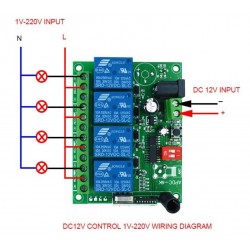 Kit emisor receptor +2 mandos 4 canales 315MHz a 12Vdc