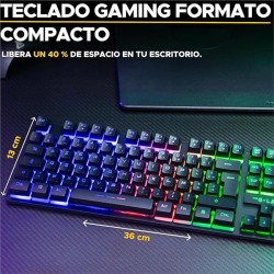 KIT GAMING THE G-LAB COMBO OXYGEN EX / TECLADO + RATON / RGB / WIRELESS 2.4CGHZ / PN: COMBO-OXY-EX/SP TECLADO : o FORMATO TKL o INALÁMBRICO 2.4GHZ o MEMBRANA REACTIVA Y SILENCIOSA o 19 TECLAS ANTI GHOSTING o 12 ACCESOS DIRECTOS MULTIMEDIA o RETROILUMINACIÓN RGB o BLOQUEO DE WINDOWS o PLUG & PLAY o USB-C RECARGABLE A USB-A RATÓN : o SENSIBILIDAD AJUSTABLE HASTA 3.200 PPP o RETROILUMINACIÓN 7 COLORES o PLUG & PLAY o RECARGABLE DE USB-C A USB-A