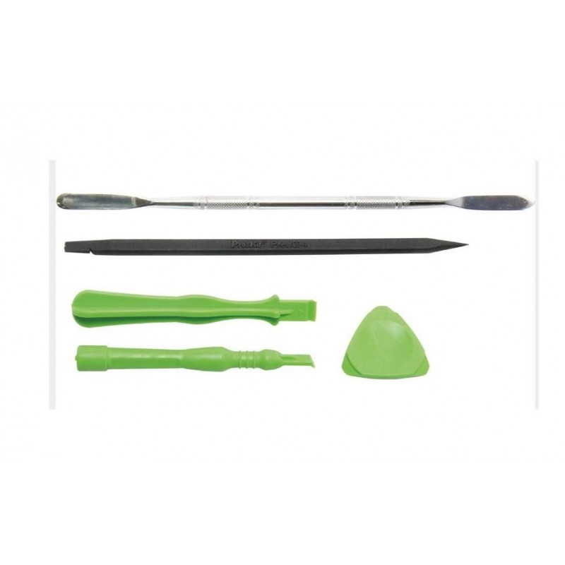 Herramientas para apertura de equipos electrónicos, Kit de 5 piezas de palancas y extractores para la apertura de Teléfonos móviles, Tablet, iPod, iPad. Contenido: Palanca de doble pala metálica de 180mm. 2 Palancas extractoras de 84,4 y 88,7mm en Polyoxymethylene. Util de de apoyo en Nylon de 150mm. Triangulo para aperturas de 30,5x30,5x30,5mm.