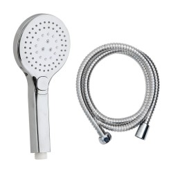 • Mango de ducha con 3 funciones.• Manguera de 1.5 m.• Diámetro de 11.1 cm.• Acabado cromado.