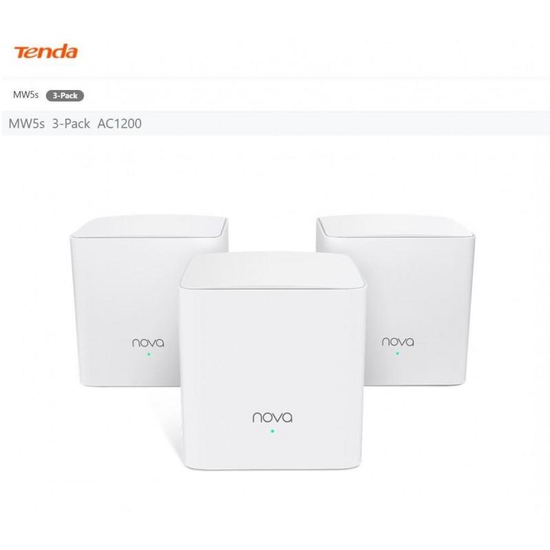 Sistems wifi Mesh x3 Unidades Wifi AC1200 Tenda modelo MW5S, wifi para todo el hogar.Incluye el router Mesh5 y dos satélites Mesh3f. Conectados con la tecnología mesh de Tenda, cada nodo automáticamente se conecta el uno con el otro, creando una red distribuida en toda la casa. Un pack de tres de MW5s cubre hasta 300 metros cuadrados.Wifi Dual 2.4/5Gz Gigabit (Modulo principal).