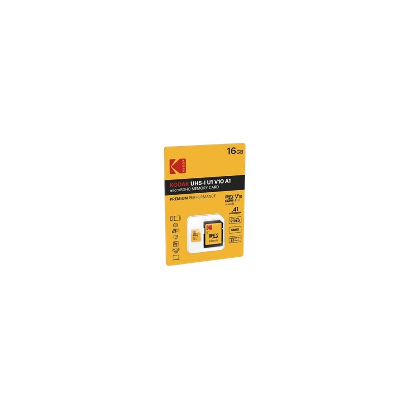 Tarjeta micro SDHC KodakPremium CLASS 10 16GBAlmacena tus recuerdos en alta definición con nuestra Tarjeta de Memoria Micro SD de 16GBNuestra Tarjeta Micro Memoria de 16GB le permite aumentar la memoria de su cámara Kodak preservando toda la calidad de sus archivos. No más preocupaciones de almacenamiento con nuestra micro SDHC de 16 GB y podrás disfrutar de tus recuerdos con total seguridad. Gracias a su velocidad de transmisión USH - U1, nuestra micro tarjeta está optimizada para reproducir y grabar tus vídeos en Full HD.