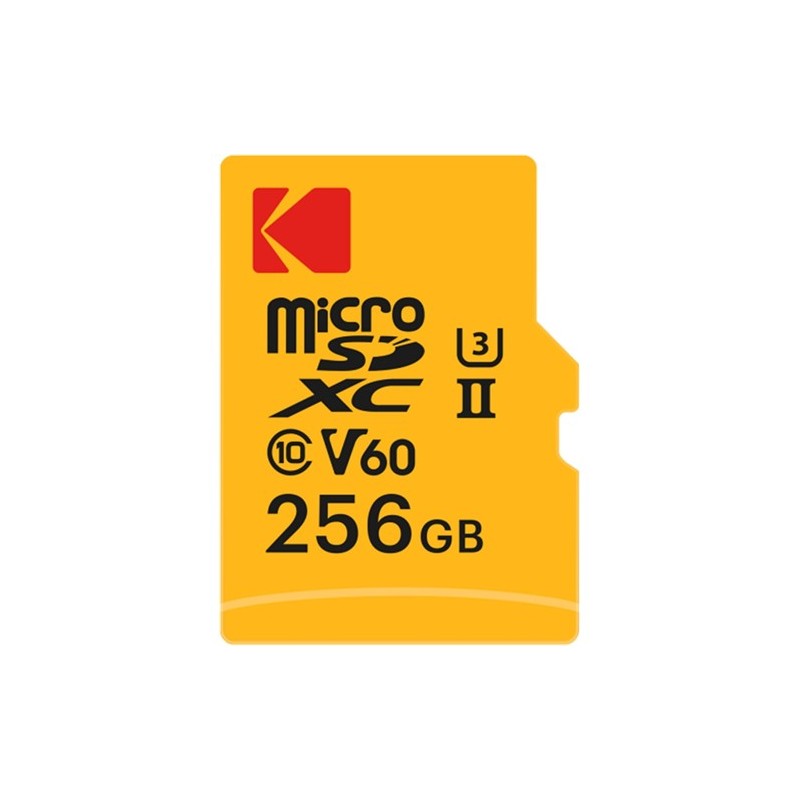 Kodak - Tarjeta MicroSD de 256 GB, UHS-II U3 V60, Velocidad ultrarrápida de 300 MB/s de Lectura, 160 MB/s de Escritura - Vídeo 4K/8K - Ideal para Creadores de Contenido - Adaptador SD IncluidoMarca KODAKNombre del modelo EKMSDM256GUHS2V1KTipo de memoria flash Micro SDCapacidad de almacenamiento de memoria 256 GBDispositivos compatibles CámaraColor amarilloFunción especial Ligera, Resistente a las caídas, Resistente a las temperaturas extremasVelocidad de lectura 300 Megabytes por segundoPeso del producto 3 GramosTipo de garantía LimitadaRendimiento ultrarrápido: Disfrute de una velocidad de lectura de hasta 300 MB/s y una velocidad de escritura de hasta 160 MB/s para transferir archivos grandes en segundos, ideal para profesionales de imágenes que trabajan con vídeos de alta resolución y disparos en ráfagasOptimizado para 4K/8K: Captura vídeos de ultra alta definición y fotos HDR con UHS-II U3 V60, que garantiza una grabación fluida y altas velocidades de fotogramas, perfecto para los creadores de contenido y entusiastas de los deportes extremosCapacidad de 256 GB: almacene más vídeos, fotos y archivos multimedia sin preocuparse por el espacio disponible, una solución ideal para aquellos que necesitan un alto rendimiento y almacenamiento fiable para proyectos profesionales o personalesAdaptador SD incluido: viene con un adaptador SD, esta tarjeta microSD ofrece la máxima compatibilidad con cámaras réflex digitales, cámaras profesionales, drones y otros equipos que requieren una tarjeta SD para capturar imágenes de alta calidadAmplia compatibilidad: funciona con todos los dispositivos compatibles con UHS-II y compatible con UHS-I, asegurando una amplia compatibilidad con cámaras, teléfonos inteligentes, drones y dispositivos microSDXC para un rendimiento óptimo en cualquier circunstanciaVelocidad de escritura 160 Mo/sInterfaz de hardware microSDXCClase de velocidad según Secure Digital Association Clase 6Fabricante EMTECDimensiones del paquete 13,5 x 9,3 x 0,4 cm, 3 gNúmero de modelo del producto EKMSDM256GUHS2V1KPeso del producto 3 gDurante décadas, Kodak ha sido una marca icónica en el campo de la fotografía, el cine y las tecnologías de imagen, creando soluciones innovadoras para capturar y conservar momentos importantes. La tarjeta microSD Kodak 256GB UHS-II U3 V60 ha sido diseñada para satisfacer los requisitos de los creadores de contenido y los profesionales de la imagen. Con una velocidad de lectura de hasta 300 MB/s y una velocidad de escritura de hasta 160 MB/s, permite una transferencia rápida y fluida de vídeos en 4K y 8K y disparos en ráfagas. Su gran capacidad de 256GB ofrece almacenamiento seguro para archivos de gran tamaño. Compatible con dispositivos UHS-II y con retrocompatibilidad UHS-I, viene con un adaptador SD para mayor flexibilidad.