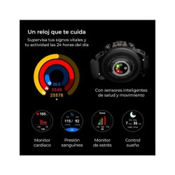KSIX Explorer Reloj Inteligente Hombre Negro con Llamadas, Notificaciones, GPS, Pantalla Amoled 1,43 pulgadas Smartwatch Deportivo con Monitor de Salud, +100 Modos Deporte, Impermeable, para iOS AndroidSistema operativo Wear OSFunción especial Control por voz, GPS, Llamada telefónicaCapacidad de la batería 450 Miliamperios hora (mAh)Tecnología de conectividad InalámbricoEstándar de comunicación inalámbrica BluetoothComposición de celdas de batería Litio IonGPS GPS integradoForma RedondaTamaño de pantalla 1,43 PulgadasMarca KSIX smart your techOPTIMIZA TU RENDIMIENTO Y BIENESTAR 24/7: Mantén tu salud bajo control con funciones de monitoreo continuo de la presión arterial, frecuencia cardíaca, oxígeno en sangre y calidad del sueño. Con más de 100 modos deportivos, este reloj inteligente te ayuda a analizar y mejorar tu rendimiento físico en todo momentoMANTENTE CONECTADO SIN SACAR TU MÓVIL: Realiza y responde llamadas, recibe notificaciones de tus apps favoritas como WhatsApp e Instagram, y controla tu música al instante desde la muñeca. Ideal para quienes buscan un smartwatch hombre con funcionalidades completas y conectividad sin interrupcionesDISFRUTA DE UNA VISUALIZACIÓN INIGUALABLE: La pantalla AMOLED multitáctil de 1,43 pulgadas ofrece una calidad de imagen brillante, perfecta en cualquier entorno. Además, cuenta con un control remoto para capturar fotos desde tu smartphone con solo un toque en tu reloj smartwatch hombreMÁS DÍAS DE USO SIN RECARGAS CONSTANTES: Con hasta 9 días de autonomía y una batería de 450 mAh, este reloj inteligente hombre te acompaña sin que tengas que preocuparte por quedarte sin batería. Entrena, monitorea y mantente conectado sin interrupcionesSUMÉRGETE CON TRANQUILIDAD GRACIAS A SU IMPERMEABILIDAD: El índice de protección 5ATM del Explorer te permite nadar o sumergirte hasta 5 metros sin problemas, lo que le convierte en el compañero ideal para quienes buscan un reloj sumergible hombre para sus actividades acuáticas favoritasMarca KSIX smart your techFabricante KSIX smart your techModelo 8427542136110Número de modelo del producto 8427542136110Número de producto BXSW26NSistema operativo Wear OSResolución del escáner 368 x 448Aparatos compatibles SmartphoneOtras características Control por voz, GPS, Llamada telefónicaComponentes incluidos Base de carga magnética USB-A, Manual, RelojNúmero de productos 1Tamaño de la pantalla 1,43 PulgadasTipo de pantalla AMOLEDDuración media de la batería 9 DíasTiempo de carga 4 HorasCarga eléctrica de la batería 450 Miliamperios hora (mAh)Composición de la pila de la batería Litio IonPotencia nominal de la batería 450 Miliamperios hora (mAh)Tipo de conexión inalámbrica BluetoothTipo de conector InalámbricoEntrada de interfaz humana Micrófono, Pantalla TáctilPeso del producto 180 g