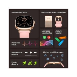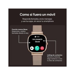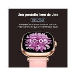KSIX Iria Smartwatch Mujer, Pantalla AMOLED 1.70 pulgadas, Autonomía 4 días, Modos Deporte y Salud, Notificaciones, Llamadas, Asistente de Voz, Correa Metal y Silicona, RosaPANTALLA LLENA DE VIDA: Sumérgete en un mundo de colores vibrantes con la pantalla cuadrada AMOLED multitáctil de 1,70 pulgadas y resolución 336 x 336 píxeles. Personaliza tu reloj inteligente KSIX Iria con más de 100 esferas diferentes.ELEGANTE Y FUNCIONAL: El KSIX Iria es mucho más que un smartwatch, es el accesorio que se adapta a tu estilo de vida con música y otras funcionalidades, como asistente de voz, función antipérdida, entre muchas otras.DOS FORMAS DE LUCIRLO: incluye dos correas intercambiables de 18mm. Una metálica para brillar en cualquier evento y otra de silicona para acompañarte en tus entrenamientos.CONTROL TOTAL DE LLAMADAS Y NOTIFICACIONES: Realiza, contesta y rechaza llamadas sin tocar tu smartphone, y recibe notificaciones de tus Apps favoritas como WhatsApp, Instagram y Facebook, todo desde tu muñeca.MÁS DE 100 MODOS DEPORTIVOS: Iria se adapta a cualquier disciplina y te ayuda a mejorar con métricas como la presión arterial, la frecuencia cardíaca, el oxígeno en sangre, el sueño y/o el ciclo menstrual.Marca KSIX smart your techFabricante KSIX smart your techModelo BXSW30RNombre del modelo BXSW30RPilas 1 AAAA (Tipo de pila necesaria)Número de modelo del producto BXSW30RNúmero de producto BXSW30RCapacidad de la memoria 128 GBCapacidad de la memoria RAM instalada 256 GBCapacidad de almacenamiento digital 128 GBSistema operativo StandardAparatos compatibles StandardOtras características StandardComponentes incluidos 2 Correas (silicona y acero), Cable magnético USB-A (80 cm), Manual de usuario, SmartwatchNúmero de productos 1Tamaño de la pantalla 15 PulgadasTipo de pantalla LEDDuración media de la batería 12 HorasTiempo de carga 3 HorasPilas / baterías incluidas NoPilas / baterías necesarias NoCarga eléctrica de la batería 10000 Miliamperios hora (mAh)Composición de la pila de la batería Litio IonPotencia nominal de la batería 3600 Amperio-horaTipo de conexión inalámbrica 802.11nTecnología GSM 4G 5GTipo de conector USBTipo de material PlásticoIncluye batería recargable NoPeso del producto 190 g