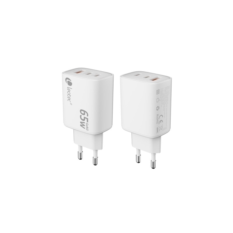 El cargador Leotec GaN de 65W con tres puertos ofrece compatibilidad con tecnologías avanzadas como Power Delivery 3.0, Quick Charge 3.0, FCP, AFC, APPLE2.4 y PPS.Con un diseño compacto de solo 89 x 44 x 31 mm, es ideal para llevarlo contigo a cualquier lugar.Gracias a su tecnología GaN, este cargador USB-C proporciona una carga ultrarrápida de hasta 65W, lo que permite cargar dispositivos a máxima velocidad. Si se conectan varios dispositivos, el cargador distribuye eficientemente la energía entre los tres puertos para garantizar una carga óptima.El cargador Leotec USB-C es compatible con una amplia gama de dispositivos.El cargador es seguro y confiable gracias a un chipinteligente que protege tus dispositivos frente a cortocircuitos, sobrevoltajes, sobrecalentamientos y sobrecorrientes.Además, cuenta con un diseño resistente al fuego con una carcasa de PC (Anti-fire V0) para ofrecerte la máxima tranquilidad mientras cargas tus dispositivos.