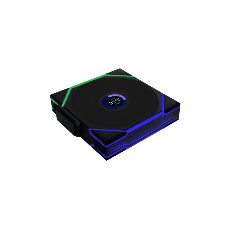Características - Carcasa del ordenador Ventilador 12 cm - 54,3 cfm 2,83 mmH2O Rodamiento dinámico fluido (FDB) - 120 x 28 x 124 mm - Negro - 1 pieza(s) Especificaciones Desempeño Localización adecuada: Carcasa del ordenador Tipo: Ventilador Diámetro de ventilador: 12 cm Máximo flujo de aire: 54,3 cfm Presión máxima de aire: 2,83 mmH2O Tipo de soporte: Rodamiento dinámico fluido (FDB) Nivel de ruido del ventilador (máx.): 31 dB Frecuencia de control remoto: 2,4 GHz Cantidad por paquete: 1 pieza(s) Velocidad del ventilador (min): 350 RPM Velocidad de ventilador (max): 1900 RPM Diseño Color del producto: Negro Material: Poliéster termoplástico (PBT) Número de ventiladores: 1 Ventilador(es) Iluminación LED: Si Iluminación de color: Multi Tipo de visualizador: LCD Control de energía Voltaje: 5 - 12 V Consumo energético del ventilador: 7,08 W Peso y dimensiones Dimensiones del ventilador (A x A x P): 120 x 28 x 124 mm