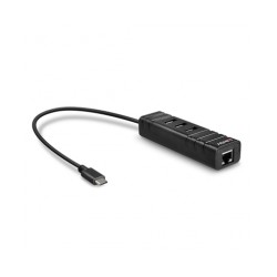 Características - Interfaz de host: USB 3.2 Gen 1 (3.1 Gen 1) Type-C - Interfaces de concentradores: RJ-45, USB 3.2 Gen 1 (3.1 Gen 1) Type-A - Cantidad de puertos: 4 - 5000 Mbit/s - Negro Plástico Especificaciones Puertos e Interfaces Cantidad de puertos: 4 Interfaz de host: USB 3.2 Gen 1 (3.1 Gen 1) Type-C Interfaces de concentradores: RJ-45, USB 3.2 Gen 1 (3.1 Gen 1) Type-A Cantidad de puertos tipo A USB 3.2 Gen 1 (3.1 Gen 1): 3 Ethernet LAN (RJ-45) cantidad de puertos: 1 CaracterÍ­sticas Velocidad de transferencia de datos: 5000 Mbit/s Color del producto: Negro Material de la carcasa: Plástico Longitud de cable: 0,26 m Certificación: CE, FCC, RoHS, REACH Control de energÍ­a Alimentación: USB USB con suministro de corriente: Si Peso y dimensiones Ancho: 30 mm Profundidad: 110 mm Altura: 20 mm Contenido del embalaje Manual de usuario: Si Condiciones ambientales Intervalo de temperatura operativa: 0 - 50 ºC Intervalo de temperatura de almacenaje: -10 - 75 ºC Intervalo de humedad relativa para funcionamiento: 0 - 85% Datos logÍ­sticos Código de Sistema de Armomización (SA): 84719000