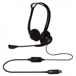 Logitech 960 USB. Tipo de producto: Auriculares, Estilo de uso: Diadema, Uso recomendado: Llamadas y música. Tecnología de conectividad: Alámbrico. Audifonos: Supraaural, Frecuencia de auricular: 100 - 10000 Hz, Sensibilidad de auricular: 111 dB. Tipo de micrófono: Boom, Frecuencia de micrófono: 200 - 6000 Hz, Sensibilidad de micrófono: -42 dB. Ancho: 545 mm, Profundidad: 54 mm, Altura: 200 mm