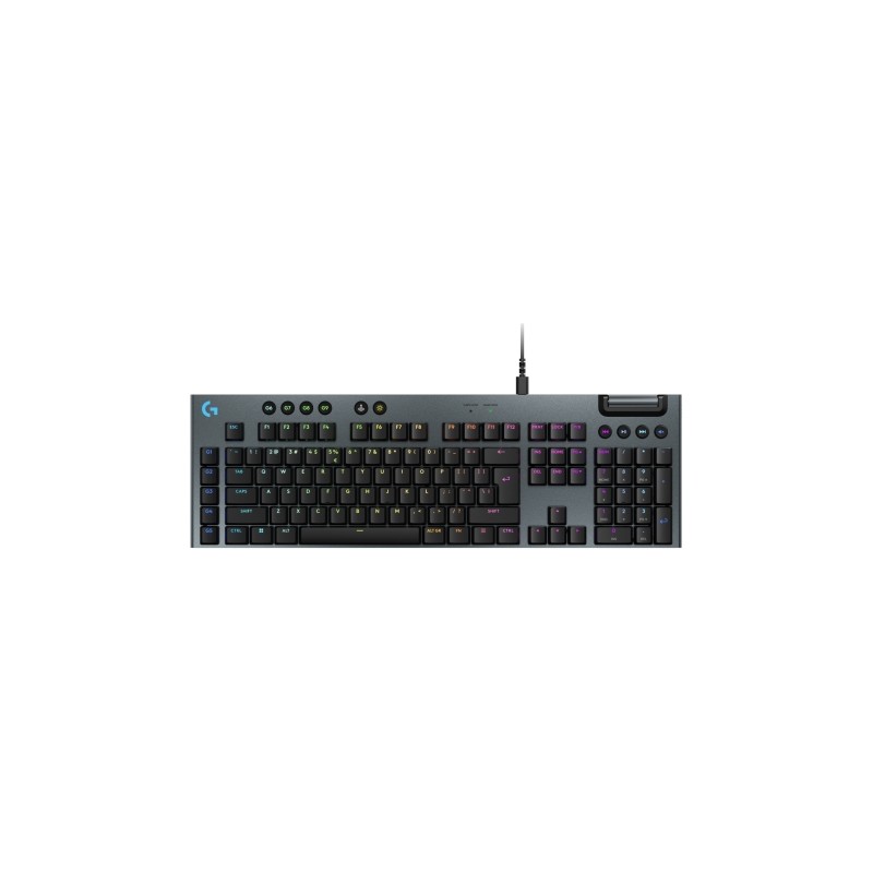 - Juego - USB Interruptor mecánico Logitech GL Tactile - QWERTY Internacional de EE.UU. - Completo (100%) Teclado numérico - Teclas de Windows Altura de teclado ajustable - Retroiluminación LED RGB Multicolor - Negro - 1 pieza(s)