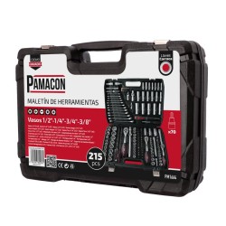 • Fabricado en CROMO-VANADIO.• Carracas con mango ergonómico.• 13 Vasos 1/4”Dr 4-14mm• 10 Vasos 3/4”Dr 10-19mm• 15 Vasos 1/2”Dr 10-32mm• 7 Vasos largos 1/4”Dr 4-10mm• 6 Vasos largos 3/8”Dr 10-15mm• 5 Vasos largos 1/2”Dr 16, 17, 18, 22mm• 5 Vasos Torx 1/4”Dr E4, E5, E6, E7, E8mm• 6 Vasos Torx 3/8”Dr E10, E11, E12, E14, E16, E18mm• 3 Vasos Torx 1/2”Dr E20, E22, E24mm• 1 Adaptador de vaso 3/8”Dr 21mm• 2 Adaptadores de vaso 1/2”Dr 16, 21mm• 2 Extensiones 1/4”Dr 2”, 4”• 1 Extensión 3/8”Dr 5”• 2 Extensiones 1/2”Dr 5”, 10”• 1 Adaptador de media 1/2”Dr• 1 Extensión 1/4”• 1Junta universal 1/4”, 3/8”, 1/2”• 1 Portapuntas 1/4” 6mm• 1 Portapuntas 3/8” 8mm• 1 Portapuntas 1/2” 8mm• 1 Mango 1/4” 6mm• 1 Mango de destornillador 1/4”• 1 Soporte de destornillador• 30 Puntas 8*30L:H5.5,6,6.5,7,8,SL6,6.5,8,PH3,4,PZ3,4,T25,27,30,35,40*2,45,50,TT27,30,35,40,45,50,M5,6,8,10• 44 Puntas 6*25L: M5,6,8,10,12,PH0,1,2,3,PZ0,1,2,3,SL4,5., 6.5,7,TT8,10,15,20,25,27,30,40,45, TO6,8,10,HX2,2.5,3,4,5,6,7,SP4,6,8,10,TW1,2,3,4• 30 Vasos de punta 1/4” H3,4,5,6,FD4,5.5,6.5,7,PH0,1,2,PZ0,1,2, T8,9,10,15,20,25,27,30,TT8,9,10,15,20,25, 27,30• 2 Vasos de punta 1/2” T55, T60• 7 Llaves hexagonales 1,1.5,2,2.5,3,4,5• 12 Llaves 8,10,11,12,13,14,15,16,17,18,19,22• 3 Chicharras 1/4", 3/8", 1/2"• 1 Maleta