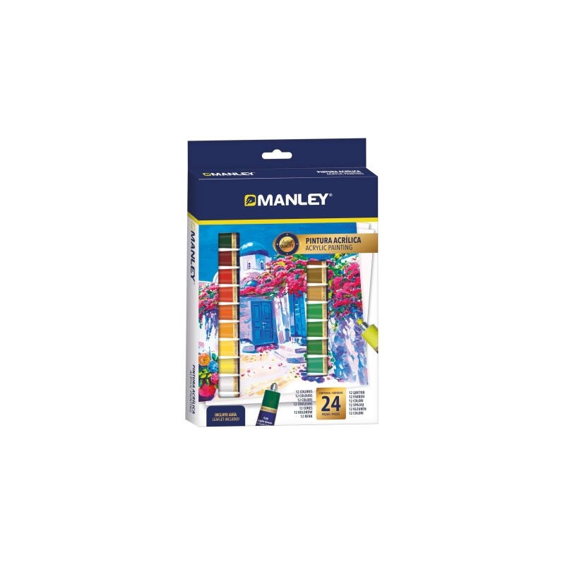 Set completo de 24 pinturas acrílicas con colores surtidosAlta pigmentación y resistencia al agua para resultados duraderosIdeal para lienzos, manualidades y proyectos artísticos variadosAcabado brillante que realza la intensidad de los coloresApto para artistas de todos los niveles, desde principiantes hasta profesionalesMarca reconocida con más de 98% de valoraciones positivas Características 1. Amplia gama de colores para máxima creatividad Este set ofrece una paleta vibrante que permite explorar técnicas diversas, desde capas gruesas hasta mezclas suaves, ideal para cualquier estilo artístico.2. Calidad profesional a precio accesible Las pinturas tienen buena cobertura, son resistentes al agua y ofrecen un acabado brillante, lo que garantiza resultados duraderos sin necesidad de invertir en productos premium.3. Versatilidad y facilidad de uso Apto para múltiples superficies y tipos de proyectos, desde cuadros hasta decoración de objetos. Su formato en tubo facilita la dosificación y conservación del producto. Especificaciones MarcaManleyModeloMDV00024Tipo de pinturaAcrílicaVolumen por unidad1 ml por tuboNúmero de piezas24 tubos de pinturaColorMulticolorAcabadoBrillanteSuperficies recomendadasInterior y exteriorImpermeabilidadSíPúblico objetivoTodas las edadesValoración media5.0 sobre 5 (basado en 2 valoraciones)Dimensiones del producto18 x 2,6 x 28 cmPeso del producto533 g