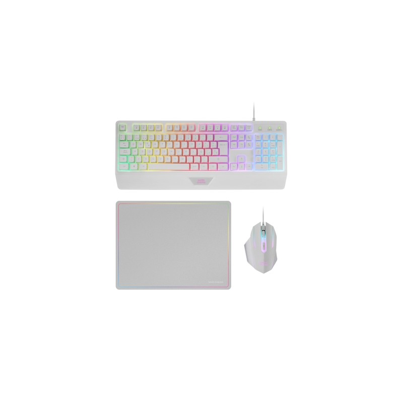 El Combo Gaming 3en1 MCP124 es la elección definitiva para los gamers que buscan la combinación ideal entre rendimiento y estilo. Incluye un teclado ergonómico H-Mech, un ratón RGB con switches HUANO y precisión total, y una alfombrilla nanotextil con diseño rainbow. Compatible con una amplia gama de plataformas, incluyendo PC y consolas, el Combo Gaming MCP124 te permite disfrutar de sesiones de alto rendimiento sin importar dónde juegues.Pack Gaming 3en1Transforma tu experiencia de juego con el Combo Gaming MCP124, diseñado para los gamers más exigentes. Con su teclado ergonómico con iluminación RGB, su alfombrilla en nanotextil con diseño Rainbow, y su ratón gaming RGB de alta precisión, cada componente está cuidadosamente diseñado para brindarte el máximo rendimiento y estilo, asegurando que tengas todo lo necesario para llevar tu juego al siguiente nivel.DISPONIBLE EN DOS VERSIONESBLANCO Y NEGRO. Escoge la que mejor se adapte a tu setup.Alfombrilla Nanotextil: Estilo y FuncionalidadLa alfombrilla gaming de 360x260 mm cuenta con un borde pintado con un impresionante efecto rainbow, añadiendo un toque de estilo a tu setup. Fabricada con nanotextil y caucho natural, esta alfombrilla proporciona un deslizamiento suave que mejora la precisión de tus movimientos. Su base antideslizante garantiza una estabilidad inquebrantable, permitiéndote concentrarte en el juego sin distracciones.Compatibilidad MultiplataformaCompatible con Windows*, Linux*, Mac, PS4, PS5, XBOX ONE, XBOX SERIES X-S y Switch*, este combo te ofrece una flexibilidad inigualable. No importa cuál sea tu plataforma de juego preferida, el MCP124 se adapta perfectamente, garantizándote una experiencia de juego sin restricciones. *Algunas funciones pueden no funcionar debido a limitaciones del sistema operativoTeclado Gaming Ergonómico H-MechEl teclado gaming de tamaño completo del combo MCP124 incluye un reposamuñecas ergonómico integrado que asegura una experiencia de juego cómoda y eficiente, permitiéndote disfrutar de largas sesiones sin fatiga. Equipado con tecnología H-Mech, este teclado combina la suavidad y durabilidad de los teclados de membrana con la respuesta rápida y precisa de los switches mecánicos, ofreciendo un rendimiento óptimo para cualquier tipo de juego.Iluminación LED FRGBLa iluminación RGB del teclado ofrece un espectacular despliegue de colores RGB fijos que eleva tu espacio de juego y mejora la visibilidad en cualquier entorno. Disfruta de una atmósfera inmersiva que transforma cada sesión de juego en una experiencia única. Ratón Gaming: Precisión y DurabilidadEl ratón cuenta con un sensor óptico de 3200 DPI, ajustable en cuatro niveles (800/1200/1600/3200 DPI), lo que te permite personalizar la velocidad y precisión según tus necesidades, asegurando movimientos rápidos y exactos en cualquier situación de juego. Además, está equipado con switches HUANO, conocidos por su durabilidad y respuesta precisa. Estos switches aseguran una larga vida útil y una experiencia de clic táctil, esencial para el rendimiento de juego.Iluminación RGB RainbowEl ratón cuenta con una espectacular iluminación RGB que añade un toque vibrante de color a tu espacio de juego. Esta iluminación no solo mejora la estética de tu setup, sino que también crea una atmósfera envolvente que te sumerge completamente en cada partida.