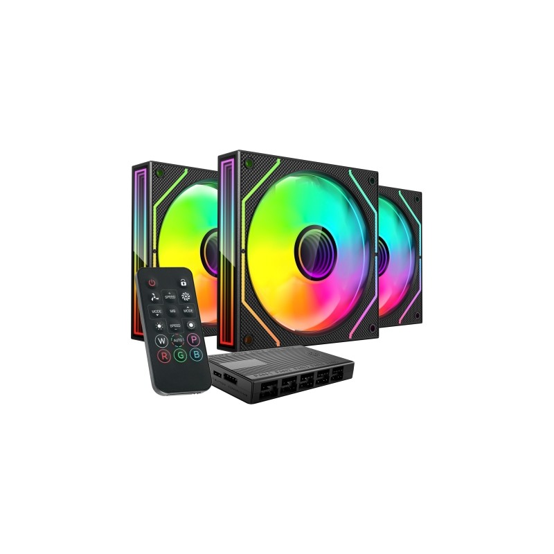 - Máxima refrigeración, personalización infinita ARGB - 3x Ventiladores ultra-silenciosos ARGB 120mm - Infinity mirror ARGB - Mando a distancia y HUB ARGB - Sistema de control PWM