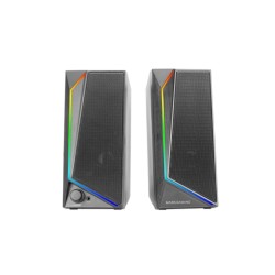 Altavoces Gaming MS72Descubre los altavoces MS72, la combinación definitiva de potencia, diseño y funcionalidad para tu setup gaming. Con 15W y avanzado chipset DSP para un sonido inmersivo, efectos de iluminación RGB Flow, alimentación USB y conexión jack 3.5mm. Con un práctico control de volumen y un puerto de entrada para auriculares y más dispositivos, están diseñados para llevar tus sesiones al siguiente nivel. ¡Sonido envolvente, estilo único y máxima comodidad en un solo dispositivo!Sonido de Alta PotenciaCon una salida de 15W y avanzado chipset DSP, los MS72 ofrecen un audio envolvente y detallado, optimizado para capturar cada momento de tus juegos, disfrutar de graves profundos en tus canciones favoritas y diálogos cristalinos en películas.Blanco y negroEscoge el que mejor se adapte a tu setupIluminación RGB FlowTransforma cada sesión en una experiencia única con los efectos de iluminación RGB Flow. Añade un toque vibrante y dinámico a tu escritorio, creando un ambiente envolvente que combina estilo y funcionalidad. Controles IntuitivosCon una rueda de volumen precisa y un práctico puerto Jack 3.5mm de fácil acceso, los MS72 llevan tu experiencia de sonido al siguiente nivel. Conecta tus auriculares, micrófono o incluso un instrumento musical y domina cada sesión con comodidad y estilo. Sin límites, ni complicaciones.Conexión Plug&PlayLos altavoces MS72 son compatibles con tus dispositivos favoritos gracias a su alimentación por USB y su conexión Jack 3.5mm. Con tecnología Plug & Play, podrás empezar a disfrutar de tu música, juegos o películas al instante, sin configuraciones complicadas.