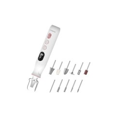 Set de manicura y pedicura - Medisana MP 940, Manos, Pies, 2h Autonomía, Batería de litio 1500 mAh, BlancoEl set de manicura y pedicura MP 940 de medisana es la solución ideal para el cuidado profesional de las uñas en casa o de viaje. Para mantener cuidadas tanto las uñas de las manos como las de los pies: sus versátiles funciones ayudan a cuidar las uñas, eliminar cutículas e incluso tratar los callos. De diseño inalámbrico y tamaño compacto, este set ofrece un uso especialmente flexible.Ajustes personalizados para una aplicación precisaCon diez niveles de velocidad y la posibilidad de configurar la rotación en sentido horario o antihorario, el MP 940 garantiza una excelente precisión. Además, puede ser utilizado tanto por usuarios diestros como zurdos. La pantalla LCD integrada muestra en todo momento el nivel seleccionado y el estado de la batería. La cómoda superficie de tacto suave garantiza un agarre seguro y un manejo agradable durante la aplicación.Resultados profesionales con accesorios versátilesEl set contiene diez accesorios de alta calidad para diferentes tratamientos, desde limar y pulir hasta eliminar callosidades rebeldes. Una cubierta antipolvo transparente evita que se extienda el polvo de las uñas y mantiene la zona de trabajo siempre limpia. La iluminación LED integrada ilumina directamente la zona de tratamiento para poder apreciar todos los detalles.Sin cables, recargable y listo para usar en todo momentoEl MP 940 está equipado con una potente batería de iones de litio que permite utilizarlo hasta dos horas de forma inalámbrica. Puede cargarse cómodamente en 3 horas con el cable USB-C suministrado. Todos los accesorios se pueden guardar en el práctico maletín de almacenamiento para mantener el set de cuidado siempre a mano y bien guardado.
