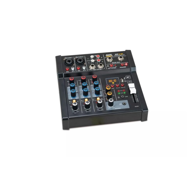 AMS. Mezclador de audio con 2x entradas MIC/LINE, 1 estéreo + 1 entrada MIC AM 5 BT