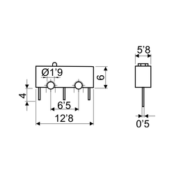 Microinterruptor 12,8x5,8x6,5mm, sin palanca. 2A 250Vac, 0,5A 30Vdc