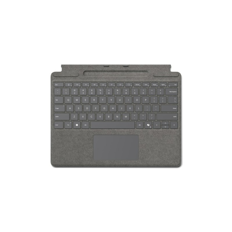 Características - QWERTZ Alemán - Touchpad - Cubierta - Acoplamiento Microsoft Cover port - Fuente de energía: Base - Marca compatible: Microsoft - Platino Especificaciones Teclado Diseño de teclado: QWERTZ Idioma del teclado: Alemán Dispositivo apuntador: Touchpad Teclado numérico: No Teclas de Windows: Si Desempeño Marca compatible: Microsoft Compatibilidad: Surface Pro 10 for Business; Surface Pro 9 for Business; Surface Pro 8 for Business; Surface Pro X for Business Color del producto: Platino Cubierta: Si Material de la carcasa: Tejido alcántara Acelerómetro: Si Puertos e Interfaces Tecnología de conectividad: Acoplamiento Interfaz del dispositivo: Microsoft Cover port Control de energía Fuente de energía: Base Requisitos del sistema Sistema operativo Windows soportado: Windows 10, Windows 11 Peso y dimensiones Ancho: 289,1 mm Profundidad: 226,1 mm Altura: 4,89 mm Peso: 281 g