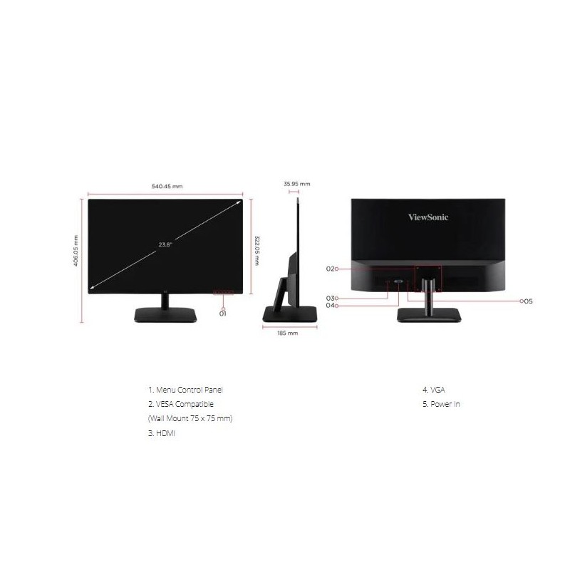 MONITOR VIEWSONIC VA2432-H-2 LED 24" IPS / 16:9 / FHD / 1 MS / 250CD/M2 / 100Hz / HDMI - VGA / VESA