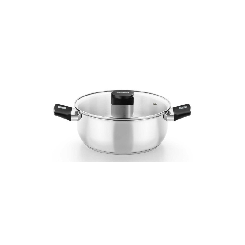 Características - Fondo difusor de aluminio de 4,5mm - Espesor total del fondo de 5,7mm - Asas de bakelita termoestable color negro de nuevo diseño - Asas unidades al cuerpo con un “bujol” soldado con embellecedor de acero inoxidable - Tapa de cristal de 4mm de espesor templada - Pomo de baquelita termoestable de diseño actual Especificaciones Características Forma: Alrededor Color del producto: Acero inoxidable Material: Acero inoxidable Cantidad de asas: 2 Tapa incluida: Si Color del mando: Negro Material de agarradera: Baquelita Material de tapa: Cristal/Acero inoxidable Número de productos incluidos: 2 pieza(s) Peso y dimensiones Diámetro: 16 cm Grosor del fondo: 5,7 mm