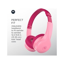 Motorola Moto JR300 - Auriculares Bluetooth para niños con micrófono, Ligeros, con limitador de Volumen de 85 dB, Divisor de Audio para Compartir, Ideales para la Escuela, Viajes, Juegos, Color RosaMarca Motorola SoundColor rosaColocación en las orejas Por encima de la orejaFactor de forma CircumauralesImpedancia 32 OhmioControl de ruido Aislamiento acústicoSensibilidad 85 dBConector para auriculares Jack de 3,5 mmNombre del modelo MOTO JR300Tecnología de conectividad InalámbricoAURICULARES PARA NIÑOS - La música estimula el desarrollo de tu hijo. Tiene un efecto calmante, puede tener un efecto positivo en el desarrollo del lenguaje y ayuda a su hijo a sobrellevar ciertos sentimientos.LÍMITE DE VOLUMEN - Para proteger los oídos de su hijo, los auriculares para niños Motorola Sound MOTO JR300 tienen un límite de volumen especial. Esto significa que los auriculares inalámbricos no deben superar los 85 dB. Este es el máximo recomendado por la OMS.JUEGA DURANTE 24 HORAS - Los auriculares para niños MOTO JR300 tienen tanta energía como tu hijo. Cuando está completamente cargado, puede usar los auriculares hasta por 24 horas. ¿Se agotó la batería, pero realmente necesitas los auriculares? Luego use el cable de audio incluido para aún más horas de placer auditivo.DIVISOR DE AUDIO - Escuchar música, programas infantiles y audiolibros es más divertido juntos que solos. Por lo tanto, los auriculares MOTO JR300 para niños vienen con un cable de audio y un divisor al que se pueden conectar hasta 2 auriculares al mismo tiempo.RESISTENTE A LOS CHOQUES - para mantenerse al día con la vida activa y a menudo caótica de su hijo, los auriculares están hechos de un material duradero y resistente a los golpes.Tecnología de comunicación inalámbrica BluetoothComponentes incluidos MOTO JR300Rango de edad (descripción) NiñoMaterial PlásticoUsos específicos del producto ViajeTiempo de carga 2 HorasUsos recomendados para el producto ViajesDispositivos compatibles smartphones, tabletas, ordenadores portátiles, consolas de juegos, reproductores MP3, televisoresTipo de control Control de volumenFunción de cable Sin cableNivel de resistencia al agua A prueba de aguaTipo de paquete Amortiguado/resistente a los impactosNúmero de unidades 1.0 ConteoEstilo JR300 PINKMétodo de control ToqueNúmero de productos 1Fabricante MotorolaModelo Bluetooth Kids HeadphonesDimensiones del paquete 17,91 x 17,6 x 7,19 cm, 240 gPilas 1 Polímero de litio necesaria(s), incluida(s)Número de modelo del producto Bluetooth Kids HeadphonesNúmero de producto Moto JR300 pkRanuras de memoria disponibles 2Interfaz del hardware Bluetooth 5Otras características Cable desmontableFactor de forma del micrófono IncorporadoDuración media de la batería 24 HorasPilas / baterías incluidas SíPilas / baterías necesarias SíComposición de la pila de la batería Polímero de LitioCaracterísticas del cable Sin cableTipo de material PlásticoFactor de forma Sobre la orejaIncluye batería recargable SíCompatible con tecnología Bluetooth SíPeso del producto 240 g