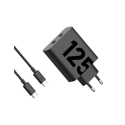 Motorola - Cargador Turbopower 125w Con Dos Puertos Usb C, Carga Ultra Rápida, Compacto, Seguro Y Eficiente Para Teléfonos, Tablets Y Ordenadores, Con Cable De 2m IncluidoREF. 6955226416750 / EAN 6955226416750El Motorola 125W TurboPower Wall Charger combina potencia máxima y portabilidad con tecnología GaNFast™, ofreciendo carga ultrarrápida para teléfonos, tablets y laptops. Su diseño compacto y dual port lo hace perfecto para viajes y uso diario. Protege tus dispositivos con seguridad avanzada contra sobrecalentamiento y sobretensiones, y ofrece eficiencia energética nivel VI, siendo confiable, ecológico y compatible con todos tus dispositivos USB-C.