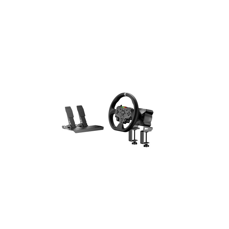 - Digital Volante + Pedales PC Cruceta, Botón menú, Botón modo, Pause/Set button, Botón de arranque - Inalámbrico y alámbrico Bluetooth/USB - Negro Metal - Corriente alterna