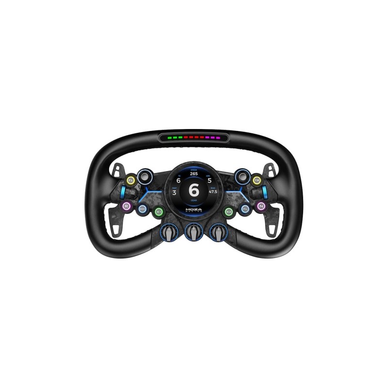Características Moza Racing Vision GS Volante de carreras Especificaciones Características Tipo de producto: Volante de carreras Color del producto: Negro Material: Aluminio, Fibra de carbono, Cuero de microfibra Diagonal de la pantalla: 7,24 cm (2.85") Peso y dimensiones Ancho: 310 mm