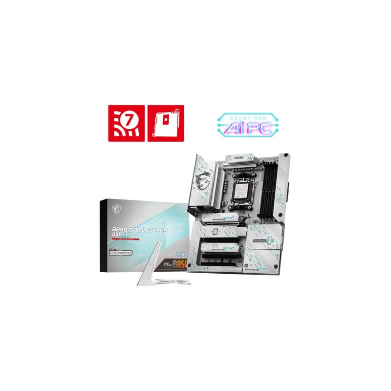 - AMD Zócalo AM5 AMD Ryzen 7000 Series, AMD Ryzen 8000 Series, AMD Ryzen 9000 Series - PC ATX AMD B850 Realtek ALC897 7.1 canales - DDR5-SDRAM 4 DIMM Memoria interna máxima: 256 GB - HDD & SSD M.2, Micro SATA III Compatibilidad con RAID Número de unidades de almacenamiento compatibles: 7 - Tipos de BIOS: UEFI AMI Versión ACPI: 6.5 - 5 Gigabit Ethernet Wifi Wi-Fi 7 (802.11be) Bluetooth 5.4