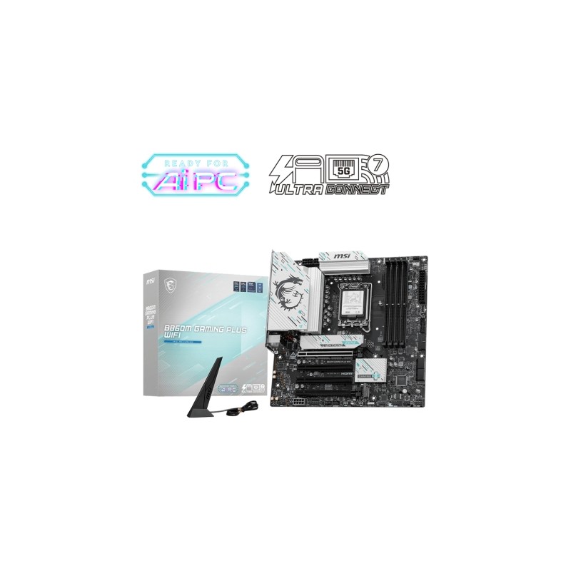 - Intel LGA 1851 (Socket V1) Intel Core Ultra (Series 2) - PC micro ATX Intel B860 Realtek ALC897 7.1 canales - DDR5-SDRAM 4 DIMM Memoria interna máxima: 256 GB - HDD & SSD M.2, Micro SATA III Compatibilidad con RAID Número de unidades de almacenamiento compatibles: 7 - Tipos de BIOS: UEFI AMI 256 MB/s Versión ACPI: 6.5 - 5 Gigabit Ethernet Wifi Wi-Fi 7 (802.11be) Bluetooth 5.4
