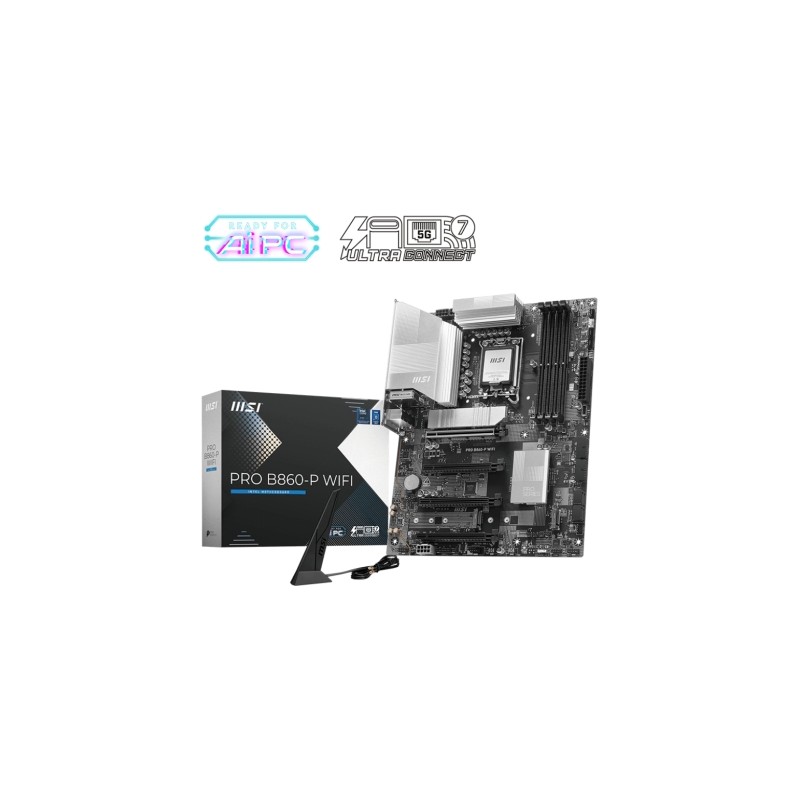 - Intel LGA 1851 (Socket V1) Intel Core Ultra (Series 2) - PC ATX Intel B860 Realtek ALC897 7.1 canales - DDR5-SDRAM 4 DIMM Memoria interna máxima: 256 GB - HDD & SSD M.2, Micro SATA III Compatibilidad con RAID Número de unidades de almacenamiento compatibles: 7 - Tipos de BIOS: UEFI AMI 256 MB/s Versión ACPI: 6.5 - 5 Gigabit Ethernet Wifi Wi-Fi 7 (802.11be) Bluetooth 5.4