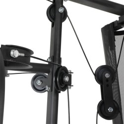 • Estación 2 en 1, dispone de dos estaciones de ejercicio en una sola máquina..• Logra un Full-Body Workout gracias a esta máquina  con la que puedes ampliar tu variedad de ejercicios.• Estructura de acero, estable y robusta.• Bloque de pesas total de 65 kg.• Set de dos mancuernas de 1.5 kg.• Banco de ejercicios regulable en altura y plegable.• Asiento y respaldo acolchados para mayor comodidad.• Incluye esponjas protectoras y transpirables para evitar lesiones.• Peso máximo del usuario: 150 kg (por seguridad, no superar).• Altura máxima del usuario: 185 cm.• Medidas: 193x222x211 cm.