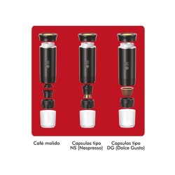 CAFETERA PORTATIL 3 EN 1 XPRESSCUP BLANCA MUVIPREF: MV06458436049041698• Disfruta del café perfecto estés donde estés. Esta cafetera portátil 3 en 1 está diseñada para acompañarte en tus aventuras, viajes o simplemente para darte un buen café en la oficina o en casa, sin cables ni complicaciones...• Compatibilidad total:- Compatible con café molido, cápsulas tipo DG (Dolce Gusto) y NS (Nespresso).- Elige tu estilo, sabor y forma favorita de preparar café.• Modo caliente / Modo frío:- Extracción en caliente: lista en 5-6 minutos, con una presión profesional de 20 bares.- Cold brew: perfecto para café frío en días calurosos o para los más modernos.• Potencia y autonomía:- Batería recargable de 7500mAh (3 x 2500mAh) para preparar hasta:* 4-5 cafés con 50 ml de agua* 3-4 cafés con 80 ml de agua* ¡Más de 50 cafés en modo directo sin calefacción!• Puerto de carga USB-C (5V/2A), batería extraíble.• Especificaciones técnicas:- Capacidad del depósito de agua: 80 ml de acero inoxidable con marcas visibles.- Capacidad del vaso: 150 ml- Materiales: ABS + PC + acero inoxidable 304- Potencia: 72W | Voltaje de trabajo: 12V• Funciones inteligentes:- Pantalla digital LED con indicador de temperatura en tiempo real- Alerta de batería baja- Cambio de modo con un solo botón- Soporte plegable de aleación de aluminio• Llévala donde quieras:- Ideal para camping, coche, moto, oficina o senderismo. Compacta, ligera y elegante, esta cafetera es tu nuevo ritual portátil para disfrutar del auténtico sabor del café estés donde estés.