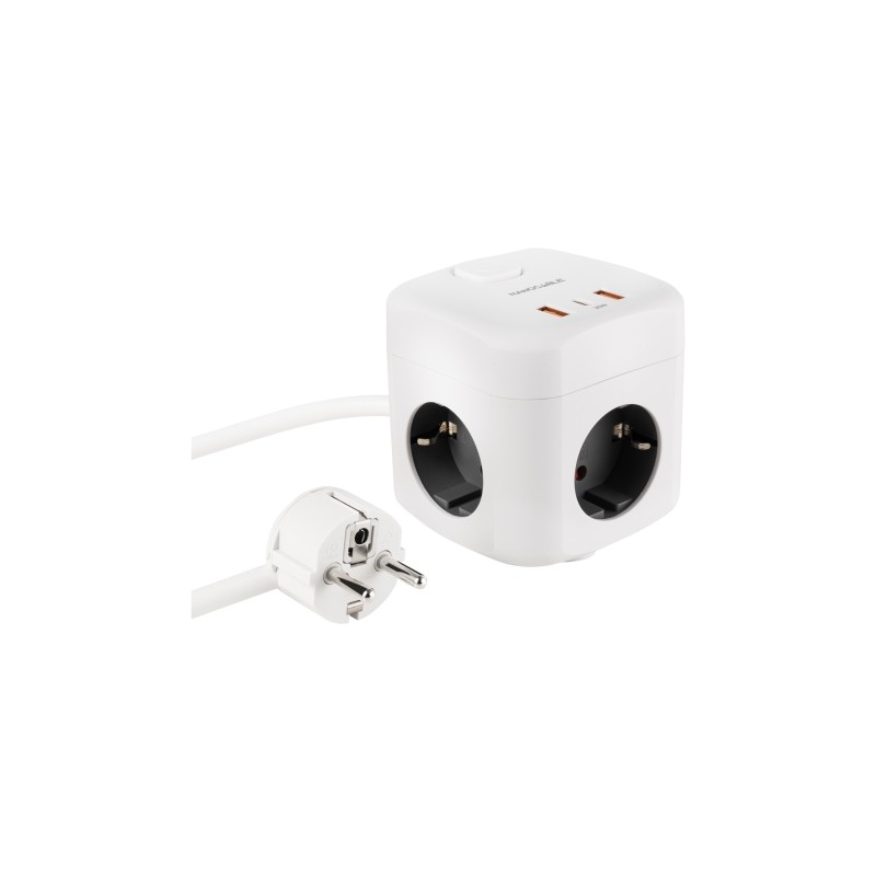 - 1,4 m Tipo de salida AC: Tipo F Tipo de enchufe: Tipo C - Interruptor de encendido/apagado integrado - 3 salidas AC - 16 A - Blanco