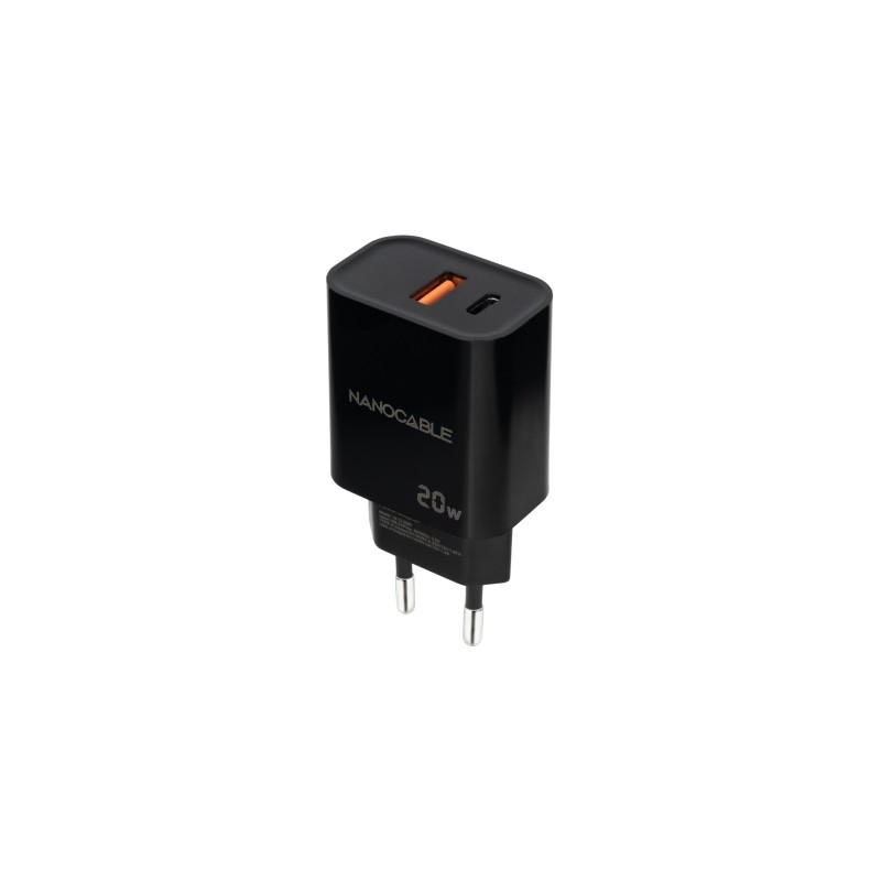 Nanocable Cargador USB-C/PD + USB-A/QC 20W Negro
