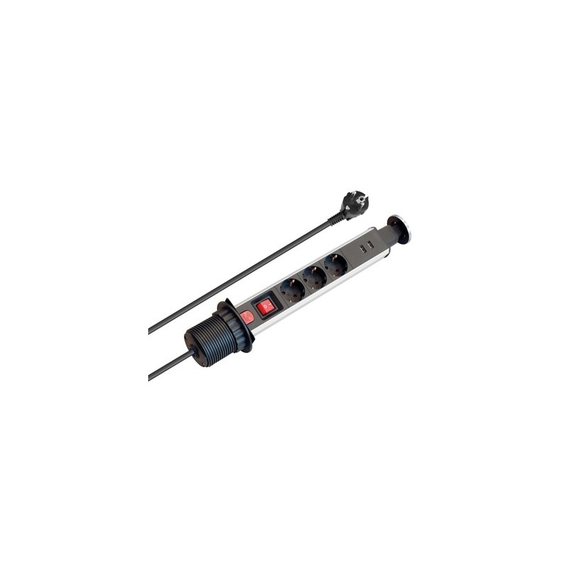MEL230 Torre retráctil con 3 tomas Schuko y 2 USB 2.4A, 1.5mMarca: NIMOCódigo de barras: 8445577001005Características técnicasColor Aluminio EMB 1/20 Longitud Cable 1,5m, 3x1.5mm2 Potencia 16A/3680W/250V Tomas 3 Tomas Schuko + 2 USB