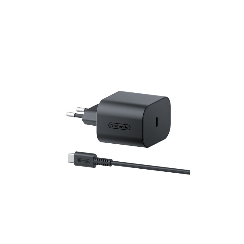 Características - Compatibilidad del cargador: Consola de juegos portátil - Tipo de cargador: Interior - Alimentación: Corriente alterna - Negro - Longitud de cable: 1,5 m - 100 - 240 V 50 - 60 Hz Voltaje de salida máximo: 20 V Especificaciones Desempeño Tipo de cargador: Interior Compatibilidad del cargador: Consola de juegos portátil Alimentación: Corriente alterna Número de dispositivos conectados simultaneamente (máx.): 1 Número de puertos USB Tipo C: 1 Compatibilidad: Nintendo Switch 2 Diseño Color del producto: Negro Longitud de cable: 1,5 m Control de energía Voltaje de entrada: 100 - 240 V Frecuencia de entrada: 50 - 60 Hz Corriente de entrada: 1.6 A Voltaje de salida máximo: 20 V Voltaje de salida mínimo: 5 V Corriente de salida (5V): 3 A Corriente de salida (9V): 3 A Corriente de salida (15 V): 3 A Corriente de salida (20 V): 3 A Peso y dimensiones Ancho: 49,5 mm Profundidad: 38,5 mm Altura: 45 mm Contenido del embalaje Cantidad por paquete: 1 pieza(s) Cables incluidos: USB Tipo C Datos logísticos País de origen: China