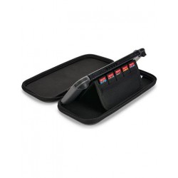 Con espacio de almacenamiento para cinco tarjetas de juego y un bolsillo de rejilla para tus accesorios más importantes, el estuche delgado te permite ir más lejos y jugar más tiempo.