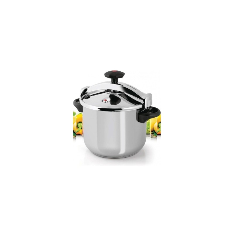 Características - Olla clásica a presión acero Inox 18/10 - Capacidad 4-6-8 litros - Triple sistema de seguridad - Sistema de cierre progresivo con pomo giratorio - Regulación de la presión interna - Apto para todo tipo de fuegos - Asas laterales - Junta de silicona Especificaciones Características capacidad total: 6 L Adecuado para los tipos de cubiertas: Cerámico, Gas, Halógeno, Inducción, Placa de sellado Color del producto: Acero inoxidable Material de la carcasa: Acero inoxidable Característica(s) de mango: Ergonómico, Aislante Material de agarradera: Baquelita Cantidad de asas: 2 Mango frío al tacto: Si Contenido del embalaje Cantidad por paquete: 1 pieza(s) Empaquetado Tipo de embalaje: Caja