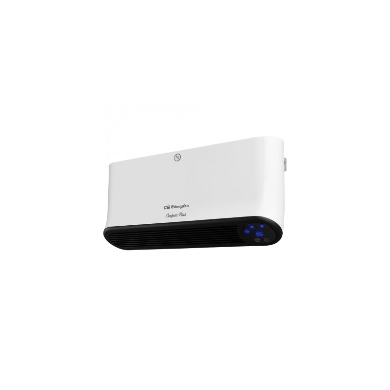 Características - Elementos cerámicos PTC - Modo ventilador - Dos niveles de calor (1000 y 2000 W) - Función detección de ventanas abiertas - Protección contra sobrecalentamiento - Interruptor de desconexión total - Termostato digital - Fijación mural y patas antideslizante - Mando a distancia (pila incluida) - Panel con indicador LED - Base antideslizante - Medidas (ancho x alto x profundidad): 45 x 22 x 12,5 cm - Conexión: 220-240 V ~ 50 Hz Especificaciones Características Tipo: Ventilador eléctrico Calefacción tipo de elemento: Cerámico Número de niveles de potencia: 2 Operado remotamente: Si Ventilación de verano: Si Interruptor de encendido/apagado integrado: Si Protección contra sobrecalentamiento: Si Diseño Adecuado para: Interior Opciones de colocación: Escritorio, Piso, Mesa, Pared Color del producto: Negro, Blanco Pantalla incorporada: Si Pantalla: LED Indicadores LED: Si Tipo de control: Tocar Desempeño Potencia de calentamiento: 2000 W Ajustes de termostato: Si Potencia de calentamiento (min): 1000 W Tipo de control del termostato: Digital Control de energía Voltaje de entrada AC: 220 - 240 V Frecuencia de entrada AC: 50 Hz Peso y dimensiones Ancho: 450 mm Profundidad: 220 mm Altura: 125 mm Contenido del embalaje Cantidad por paquete: 1 pieza(s) Mando a distancia incluido: Si Manual de usuario: Si