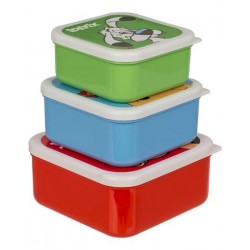 El juego de 3 fiambreras Asterix se compone de tres tamaños diferentes en los colores rojo, azul claro y verde.
