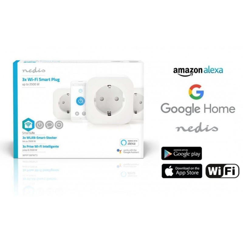 Pack de 3 unidades de Schuko 10A inteligente Wifi compatible con los asistentes de Alexa y Google.Controle varios electrodomésticos de forma remota con solo enchufarlos a este conector inteligente inalámbrico y conectándolos a su smartphone o tableta mediante el router Wi-Fi.Fácil de instalar mediante una conexión directa a la red Wi-Fi.Puede utilizarse como producto independiente o conectarse de forma sencilla con otros productos SmartLife de NEDIS.