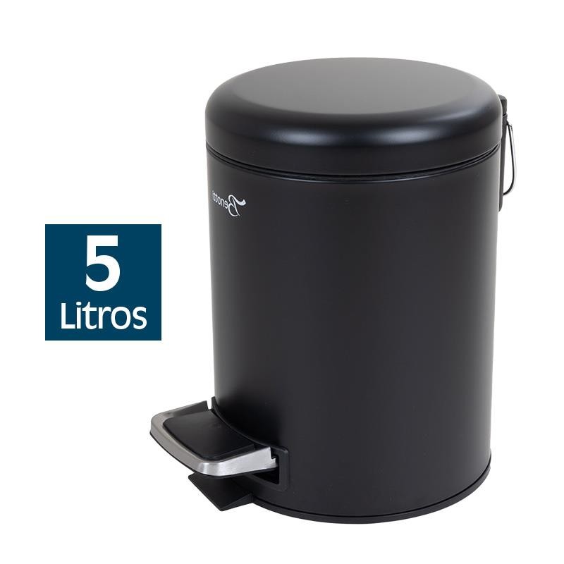 • Papelera de baño con pedal de apertura.• Capacidad de 5 litros.• Descenso progresivo.• Cesta interna con asa extraible y lavable.• Antihuella.• Acabado negro mate.