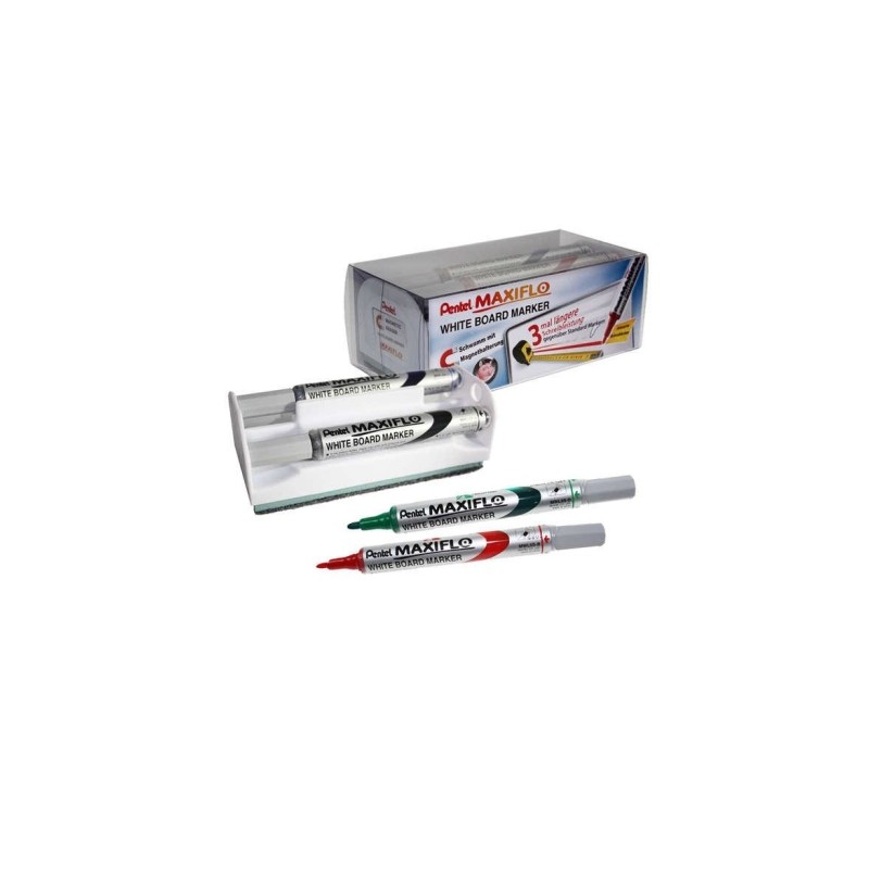 Características Pentel Maxiflo marcador 4 pieza(s) Punta cónica Negro, Azul, Verde, Rojo Especificaciones Características Cantidad por paquete: 4 pieza(s) Colores de escritura: Negro, Azul, Verde, Rojo Tipo de punta: Punta cónica Recargable: No Empaquetado Tipo de embalaje: Caja