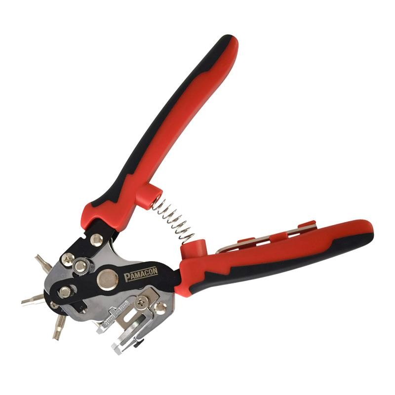 • Perforadora multifunción 6 en 1.• Ideal para cuero, cartón, plástico, tela, papel, caucho, etc.• Longitud: 203 mm.• Perforación hasta 4.5 mm.• Tamaños perforaciones: 2-2.5-3-3.5-4-4.5 mm.• Se pueden perforar láminas de cobre, aluminio y acero de hasta 0.3 mm.