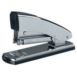 Grapadora clásica metálica. Para usar a diario. Robusta y fiable. La tecnología de impacto directo patentada garantiza siempre un grapado perfecto. Características - Grapa hasta 30 hojas de papel (80 g/m²) - Grapado preciso gracias a la tecnología de impacto directo - Muy fácil cambio de grapado abierto a cerrado, gracias al sencillo movimiento de la sufridera; la abertura de 180º permite la función clavadora - Para usar con grapas Petrus 22/6, 24/6 y 26/6 - Cargador doble guía Especificaciones Características Capacidad de engrapado: 30 hojas Grapado permanente: Si Punteo: Si Fijación: Si Color del producto: Cromo Tipo de amarre: Cierre estándar Tipo de grapa: 22/6, 24/6, 26/6 Material: Metal Peso de media: 80 g/m² Profundidad de cuello: 7,2 cm Sistema de carga de engrapador: Frente Capacidad: 140 grapas Peso y dimensiones Ancho: 70 mm Profundidad: 142 mm Altura: 47 mm Peso: 310 g Otras características Periodo de garantía: 10 año(s)